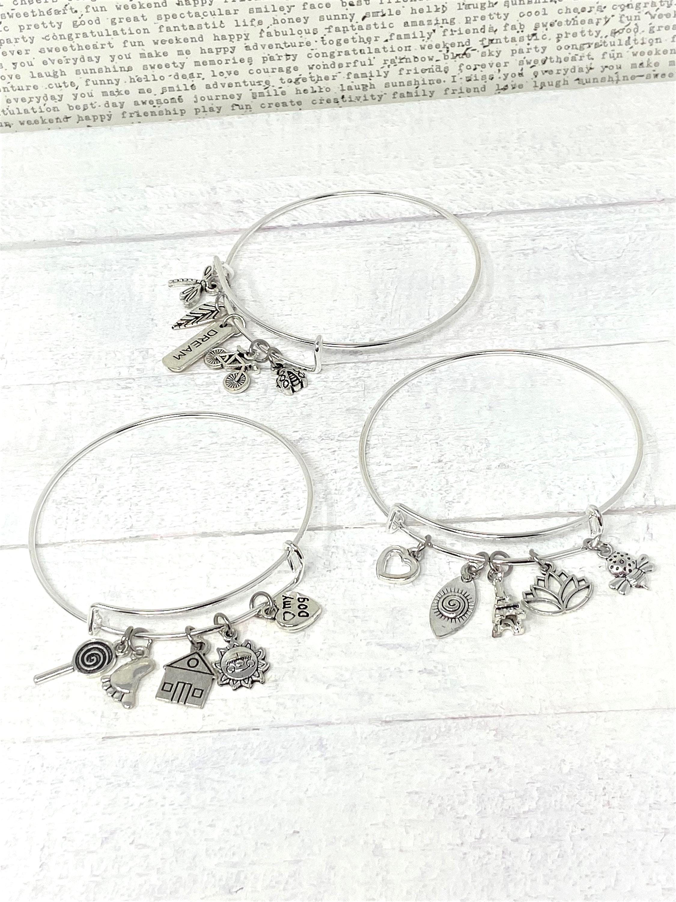 Each bangle comes with 5 charms!! Charms come in variety of sizes and chosen randomly!