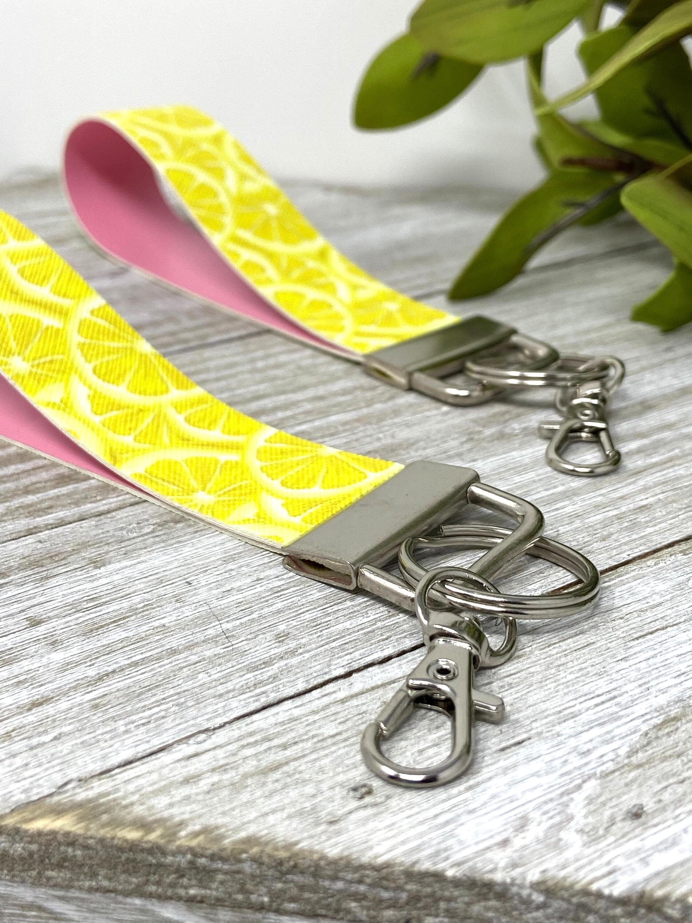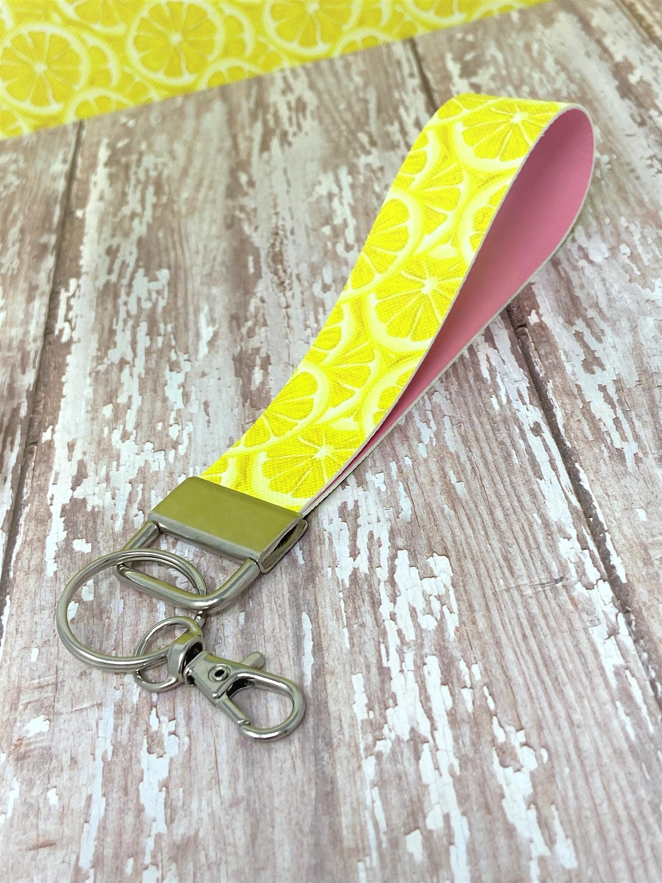 Never lose your keys again with this adorable lemonade wristlet for keys!!