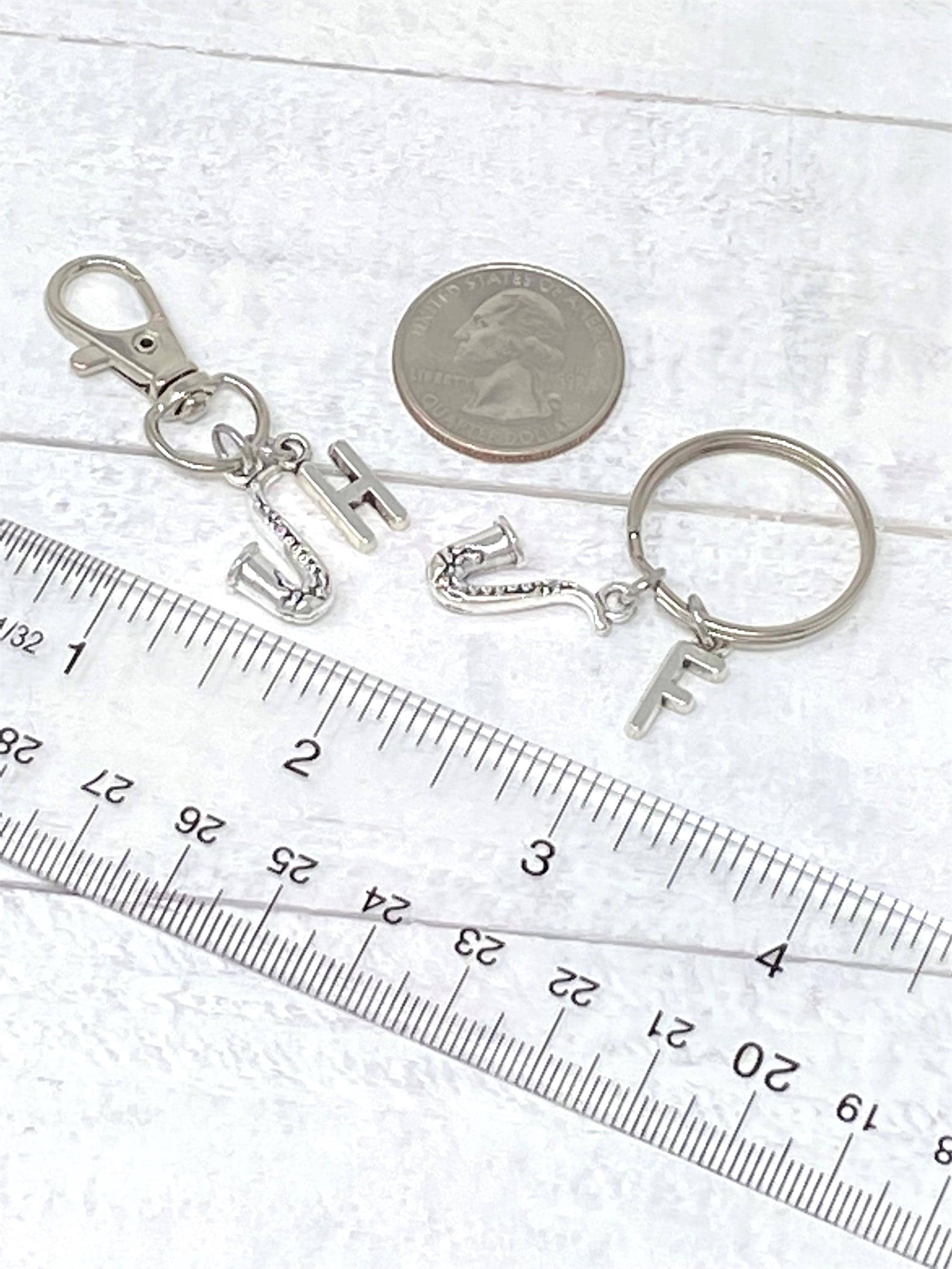 (Click "Add Personalization" and type the initial or multiple initials that you would like on your keyring or zipper pull)
