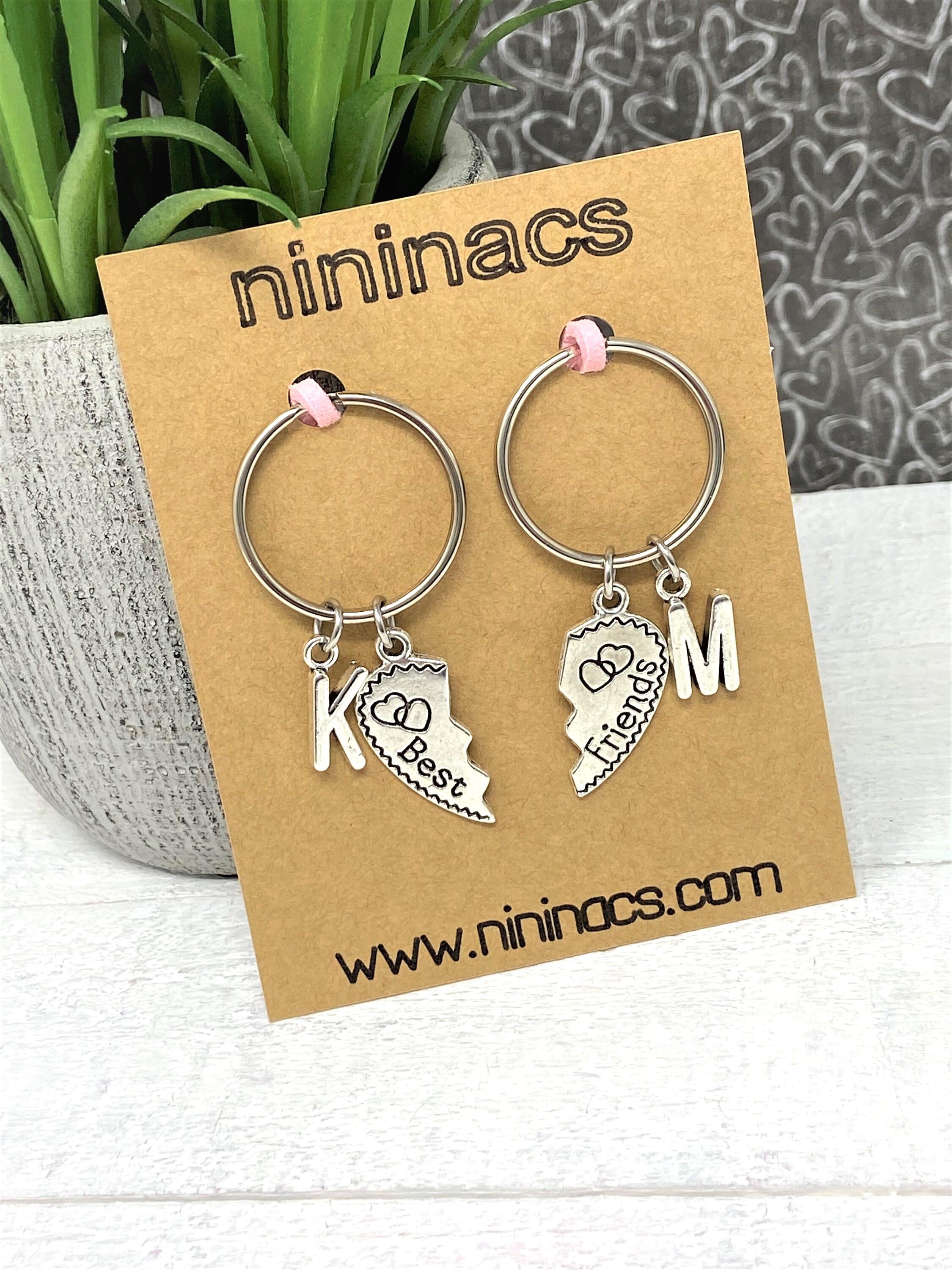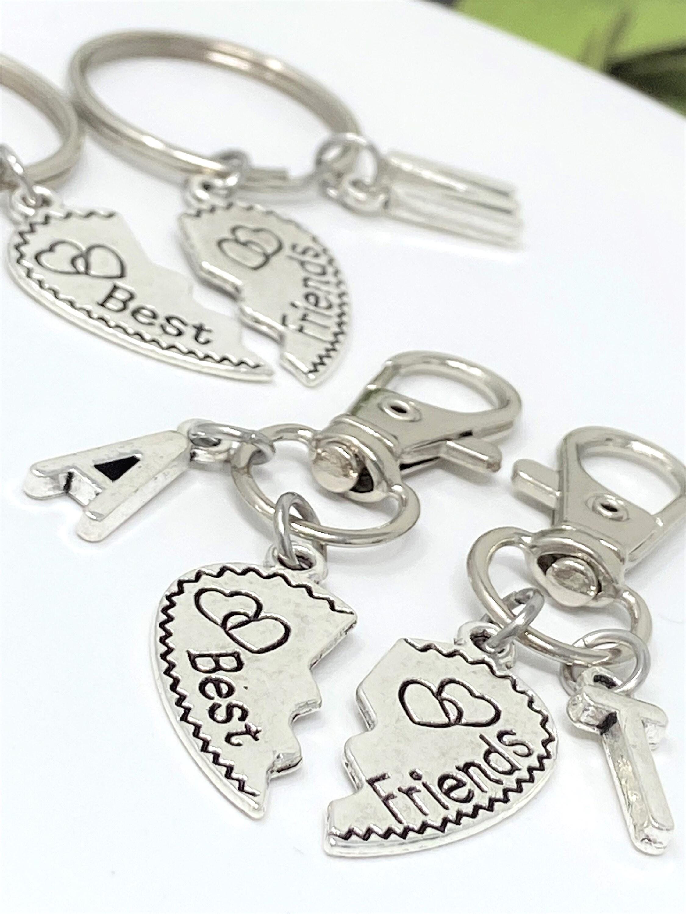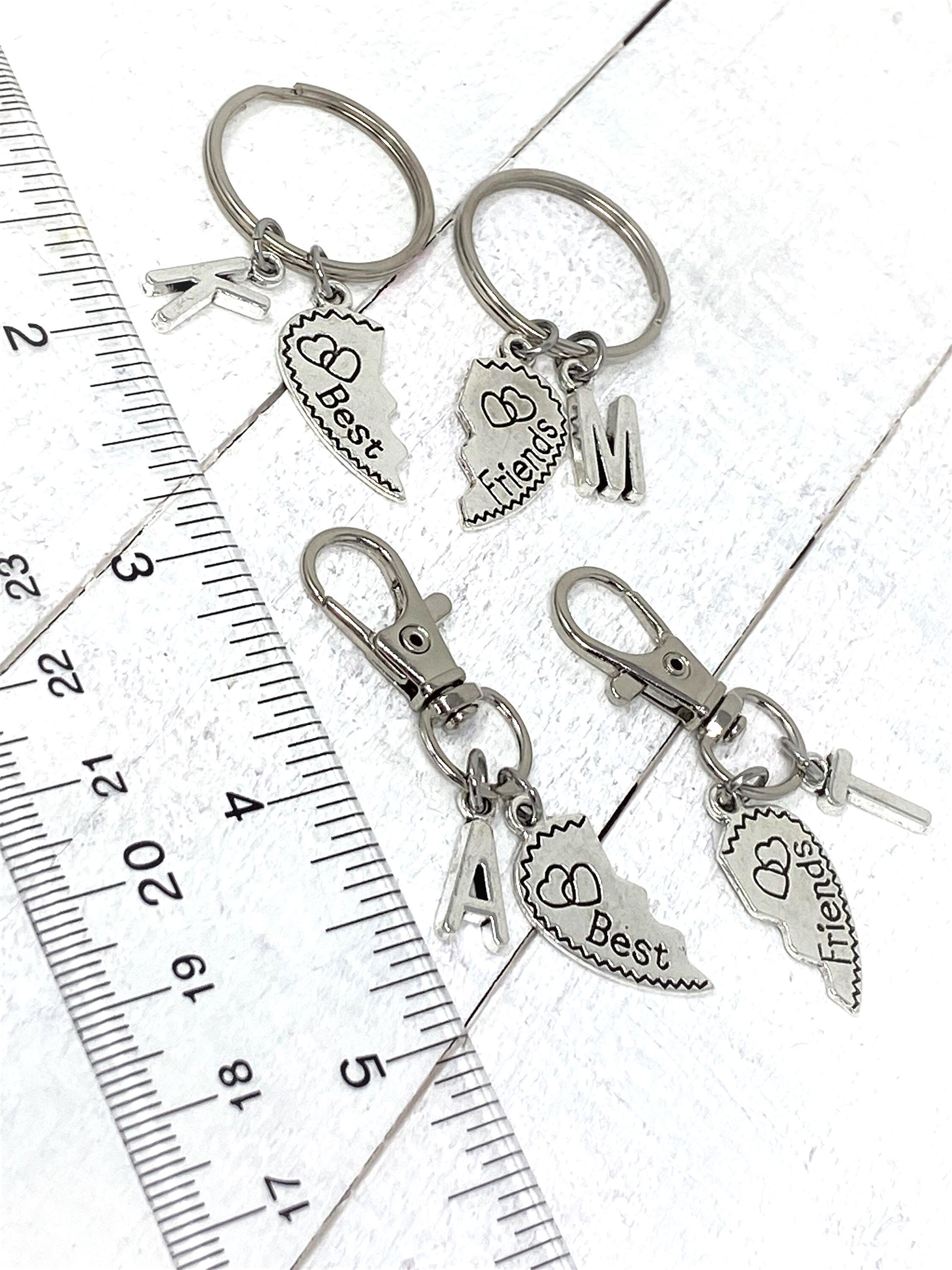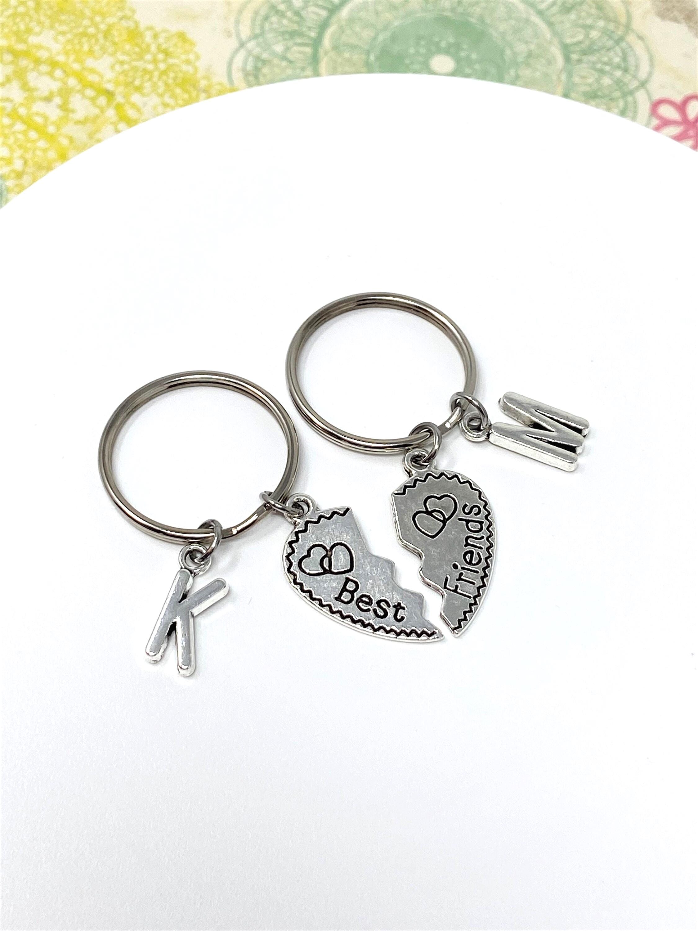 Friends Keychain Set - Personalized Initial Keychain - Matching Heart Keychains - Friendship Gift