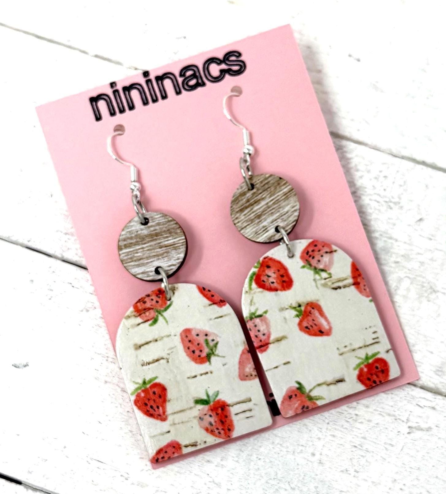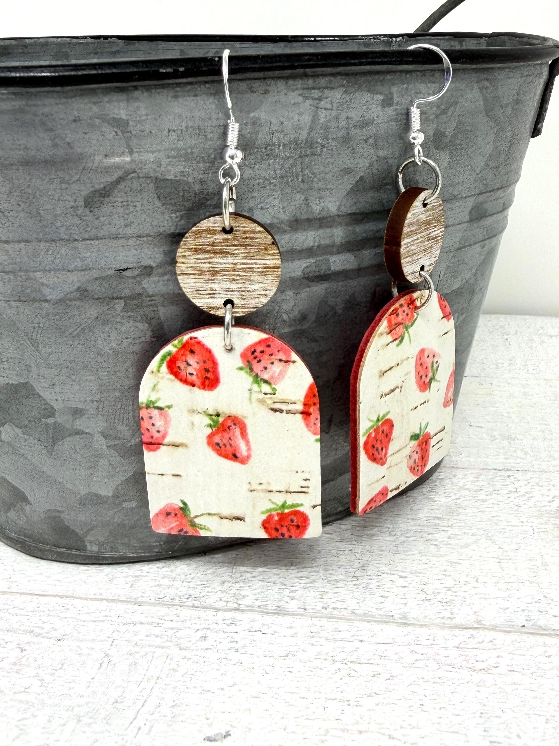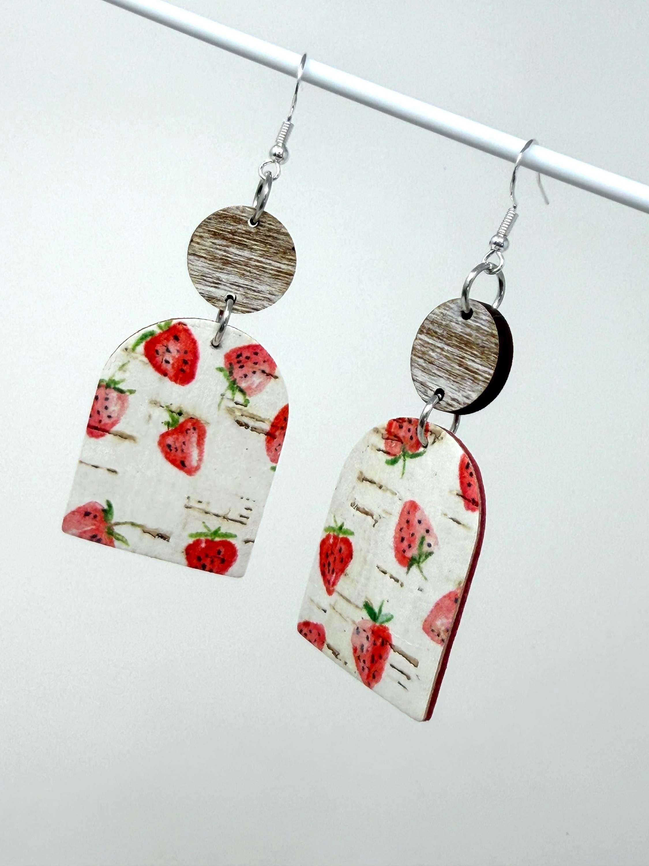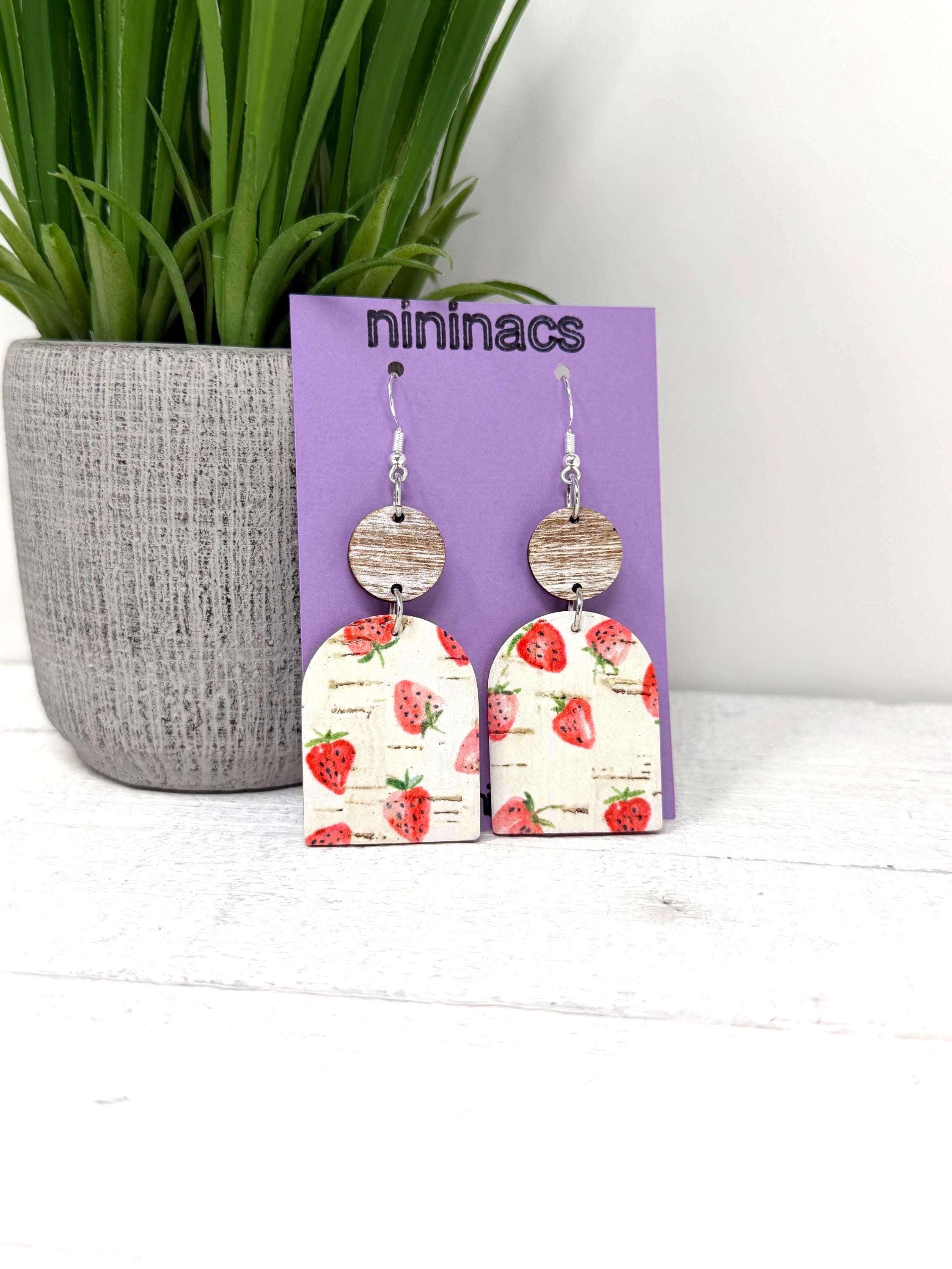 These strawberry cuties are large sized cork earrings with a leather back hanging from a small wooden circle. They have a rustic/vintage look to them🩷🩷🩷