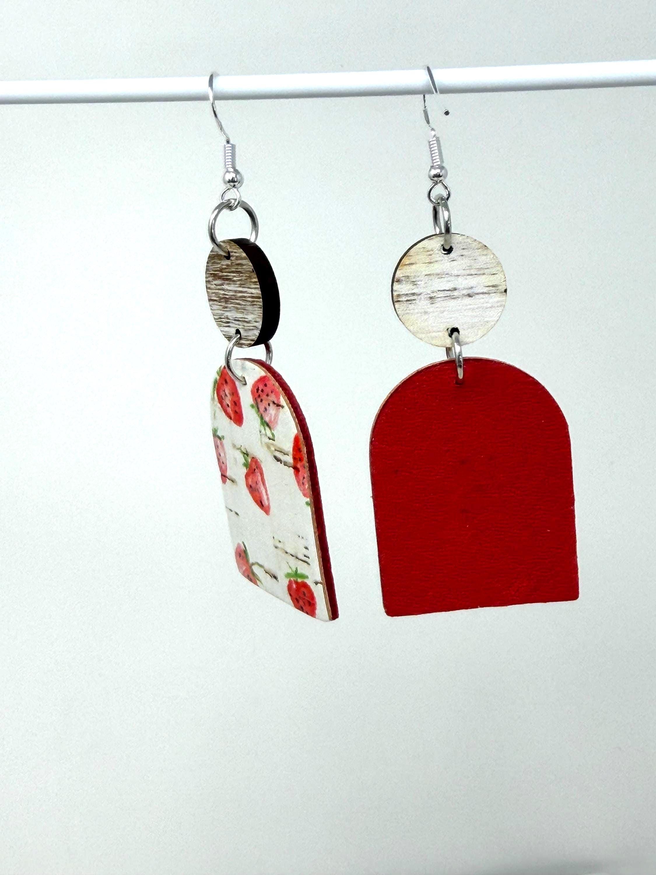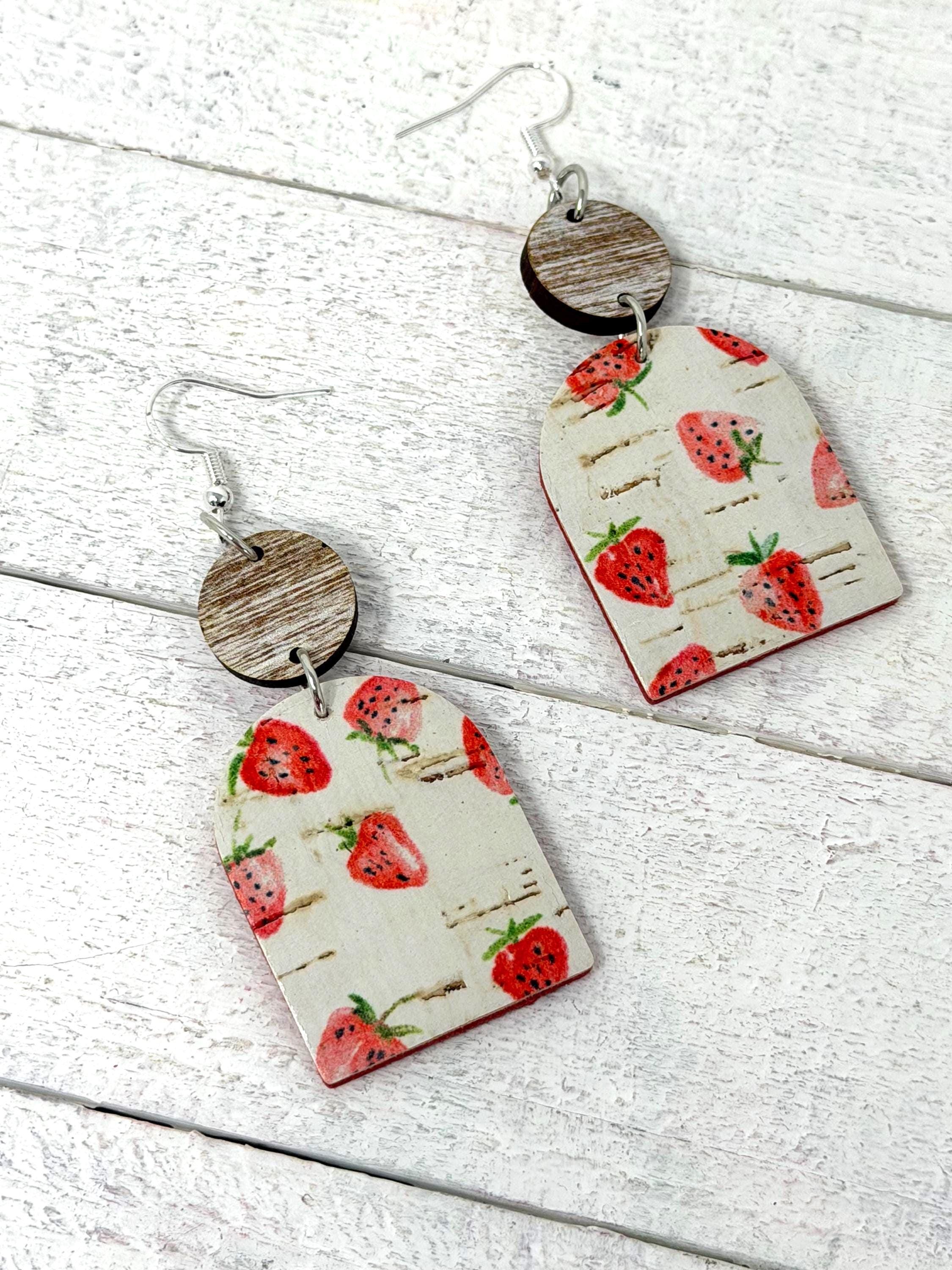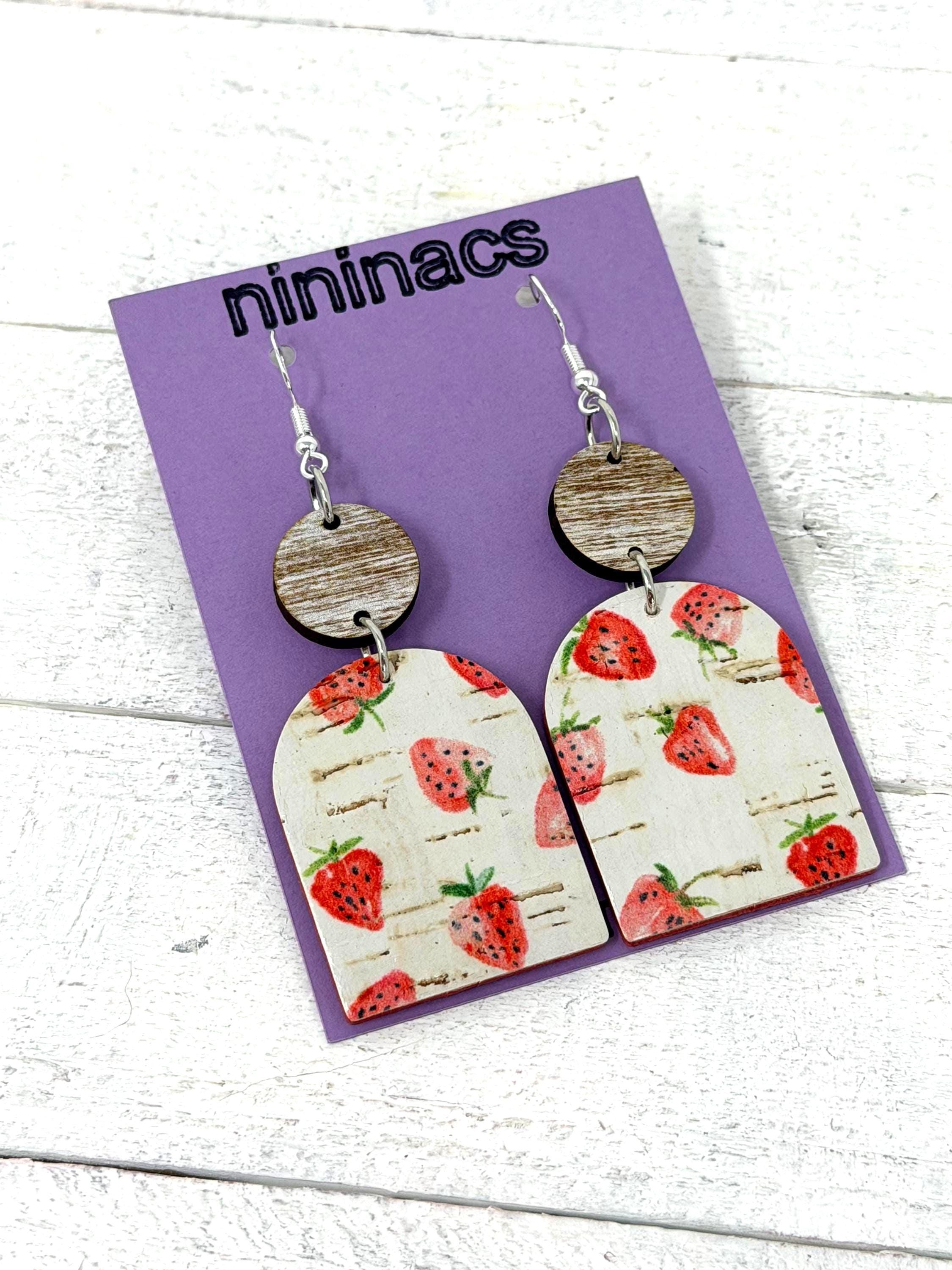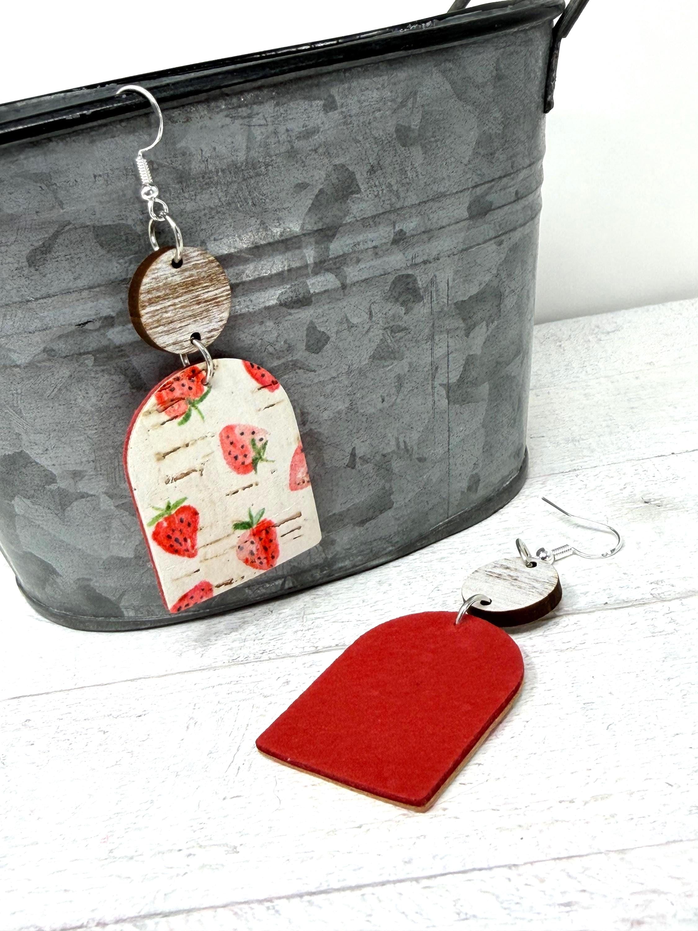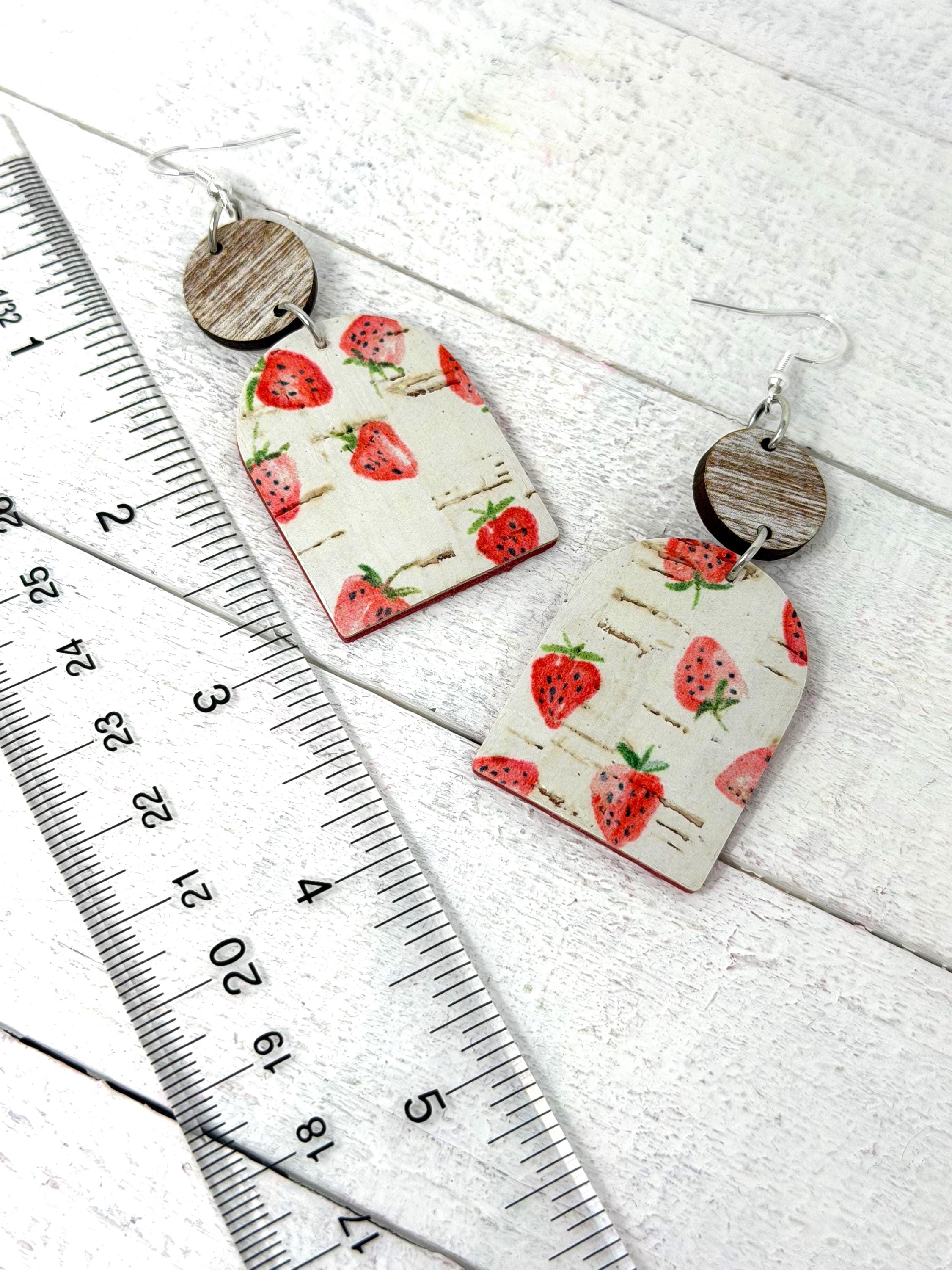 These strawberry cuties are large sized cork earrings with a leather back hanging from a small wooden circle. They have a rustic/vintage look to them🩷🩷🩷